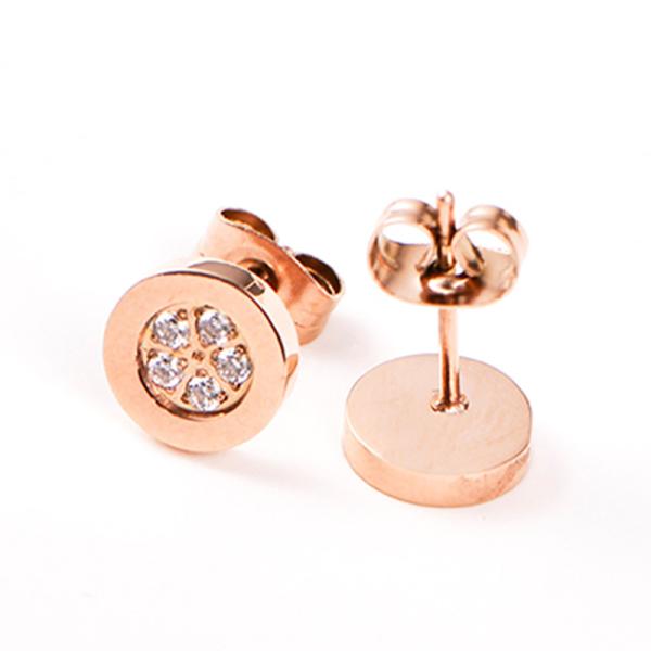 High Quality Rose Gold Plated Round Shape Zircon Stud Earring